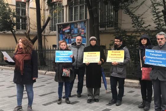 Ezilenlerin Sosyalist Partisi (ESP) İstanbul İl Örgütü, Fransa’daki ‘Sarı yelekliler’ ile dayanışmak için Taksim’deki Fransız Konsolosluğu önünde basın açıklaması yaptı.