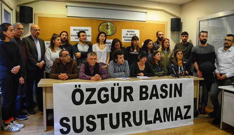 Basın açıklamasının ardından söz alan HDP’den Züleyha Gülüm, Ahmet Şık, HDK’nin Eşsözcüsü İdil Uğurlu, Evrensel gazetesinden Fatih Polat, TGS Genel Başkanı Gökhan Durmuş ve DİSK Basın İş’ten Ali Ergin Demirhan, yaşanan hukuksuzluğa dikkat çekerek, dayanışma çağrısında bulundu.
