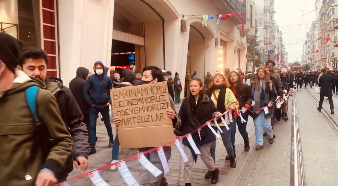 Fatura zinciri oluşturan öğrenciler İstiklal Caddesi’nde sloganlar atarak ve “Barınamıyoruz, geçinemiyoruz, ödeyemiyoruz” dedi. Öğrencilere müdahale eden polis, 26 öğrenciyi işkence ile gözaltına aldı.