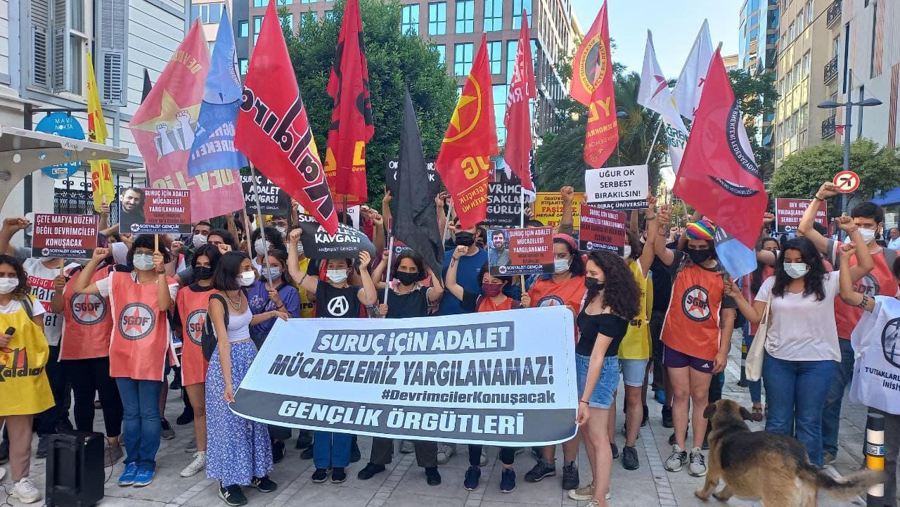 Devlet, Kobane yolunda Suruç’ta katledilemeyen devrimcilerden, Suruç yaralılarımızdan ve Suruç şehitlerinin yakınlarından adeta hınç çıkartıyor. Suruç Katliamı’nın esas sorumluları, canlı bombaya yardım edenler, göz yumanlar, IŞİD’i tüm toplumun üstünde bir sopa gibi kullananlar yargılanmıyor; yargılıyorlar. Suruç Katliamı’nda bu devletin mahkemesi yüzde 50 kusuru kimde buluyor ? Kobane yolunda Suruç’ta olanları suçlu ilan ediyorlar, 33 düş yolcusu suçlu ilan ediliyor. Suruç yaralılarımızdan Efe Çatalbaş, Mervenur İşleyici, Uğur Ok, ailelerimizden Besna Erol ve adalet mücadelesi yürütücülerimizden Okan Danacı hala hapishanede tutulmaktadır.