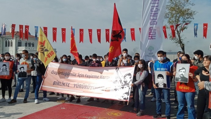 HDP Milletvekili Musa Piroğlu’nun da katıldığı açıklamada, gençlik örgütlerinin taşıdığı flamaların yanı sıra, İbrahim Kaypakkaya, Deniz Gezmiş, Mahir Çayan, Haki Karer gibi devrimci önderlerin fotoğrafları taşındı.