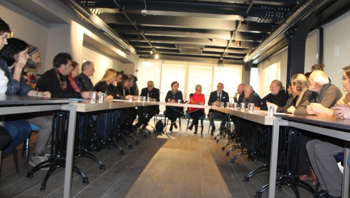 Baro binasında yapılan toplantıya İstanbul Tabip Odası Başkanı Pınar Saip, İstanbul Barosu Başkanı Mehmet Durakoğlu, sanatçılar Orhan Aydın, Pınar Aydınlar, Grup Munzur, Ataol Behramoğlu, Ece Ataer, İbrahim Karaca ile işe iade talepleriyle geçtiğimiz yıllarda 324 gün açlık grevinde kalan Nuriye Gülmen ve açlık grevindeki Grup Yorum üyelerinin aileleri katıldı.