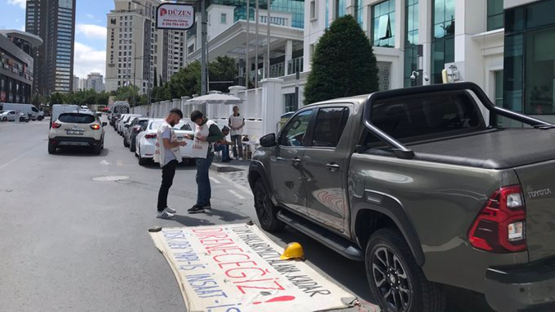 Gasp edilmek istenen hakları için direnişe geçen İnşaat-İş ve DİSK/Dev Yapı-İş, başlattığı direnişi 2’nci gününde Ataşehir’de bulunan Emlak GYO önüne taşıdı.