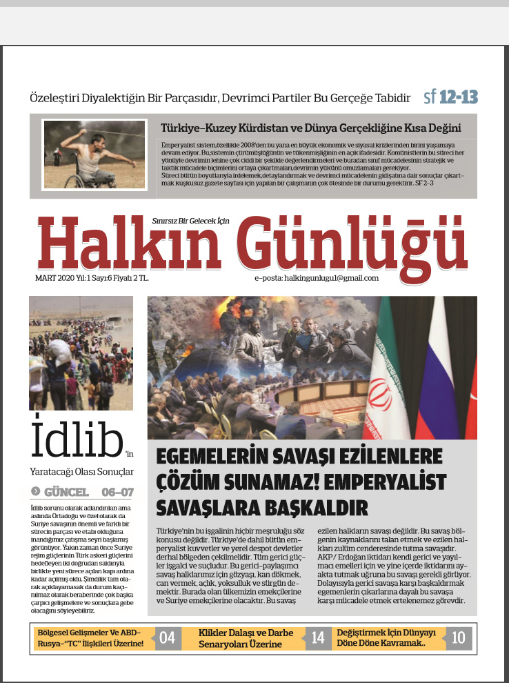 Halkın Günlüğü gazetesinin 6. sayısı “Egemenlerin savaşı ezilenlere çözüm sunamaz! Emperyalist savaşlara başkaldır” manşetiyle çıktı