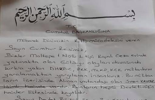 Bianet’ten Ayça Söylemez’in haberine göre, Maltepe Cezaevi’nde, E-9 koğuşunda bulunan 15 sanığın imzasının bulunduğu mektupta, “Mübarek dinimizin kutlu mücadelesini veren” diye hitap edilen Erdoğan’ın “emirlerini bekledikleri” ifade ediliyor.