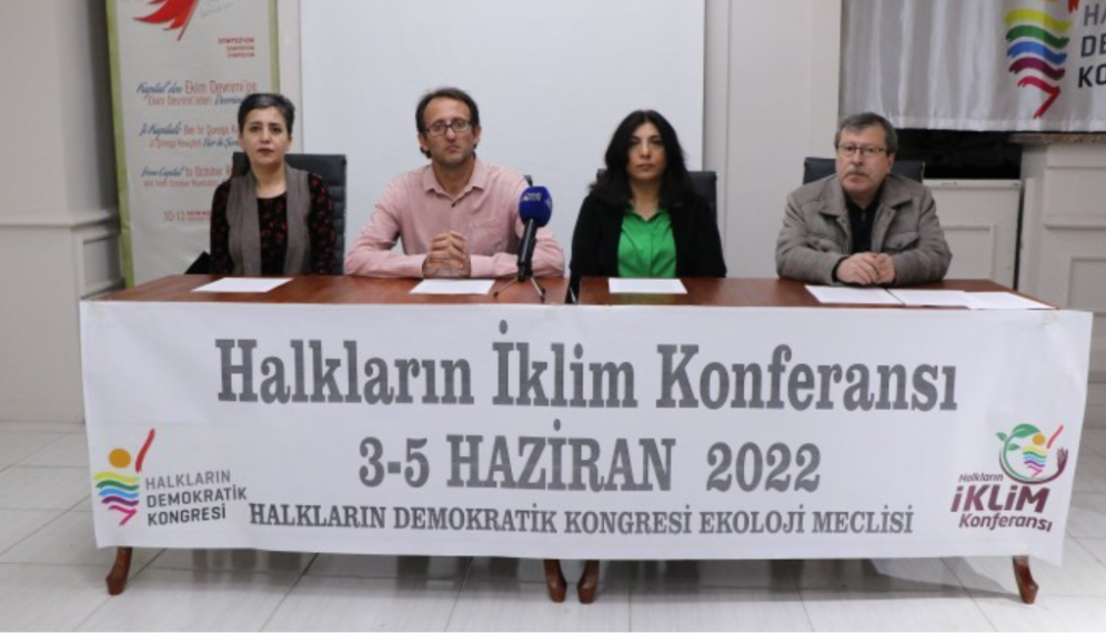Halkların Demokratik Kongresi (HDK) Ekoloji Meclisi, 3-5 Haziran 2022 tarihlerinde gerçekleştireceği “Uluslararası Halkların İklim Konferansı” öncesinde HDK Genel Merkezi’nde basın toplantısı düzenledi. Açıklamaya HDK Sözcüleri Esengül Demir ve Cengiz Çiçek, HDK üyeleri, Halkların Demokratik Partisi (HDP) MYK üyesi Naci Sönmez’in yanı sıra çok sayıda kişi katıldı.