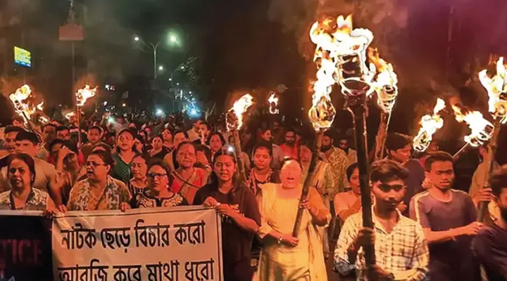 Yürüyüş, Cuma günü RG Kar Tıp Fakültesi’nde 31 yaşındaki bir kadın stajyer doktorun vahşice tecavüze uğraması ve öldürülmesiyle başlayan ve yaklaşık bir haftadır süren protestoların sonuncusuydu.
