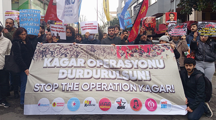 Alınteri, Devrimci Hareket, Ezilenlerin Sosyalist Partisi, Kaldıraç, Komün, Mücadele Birliği, Partizan, Sosyalist Meclisler Federasyonu ve Sosyalist Mücadele İnisiyatifi’nin çağrısıyla, “Hindistan’da Kagar Operasyonu Durdurulsun, Katliam Son Bulsun” şiarıyla gerçekleştirilen eyleme Mücadele Birliği, Gençlik Komünleri, Yeni Demokrat Kadın, SGDF, gençlik örgütleri ve çok sayıda kişi katıldı.