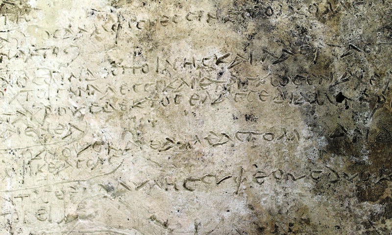 Tablet, Yunan Arkeoloji Hizmetleri ile Alman Arkeoloji Enstitüsü işbirliği içinde, üç yıllık yüzey araştırmaları sonrasında keşfedildi.