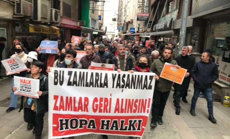 Artvin Hopa’da halk zamlara ve hayat pahalılığına karşı sokağa çıktı. Hopa Parkı’nda buluşup sloganlar eşliğinde sokaklarda yürüyen halk, Hopa Meydanı’nda yaptıkları açıklamada, bölgelerinde yapılan barajlarla ve HES’lerle birlikte elektriği daha ucuza kullanacaklarının söylendiğini ancak bugün gelinen noktada zamlarla birlikte halkın faturalarını ödeyemediğini belirti.