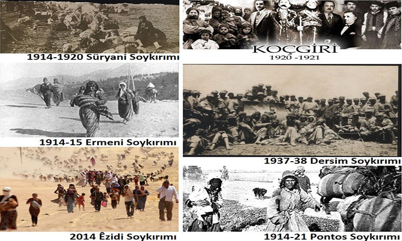 Tarih’in sayfalarına baktığımızda Ermeni, Rum, Süryani, Kıpti, Kürt ve Alevi Katliamları, en belirgin katliamlar olarak karşımıza çıkmaktadırlar. 24 Nisan 1915 Ermeni Soykırımı’nın başlangıcı olarak Tarih’e geçer.
