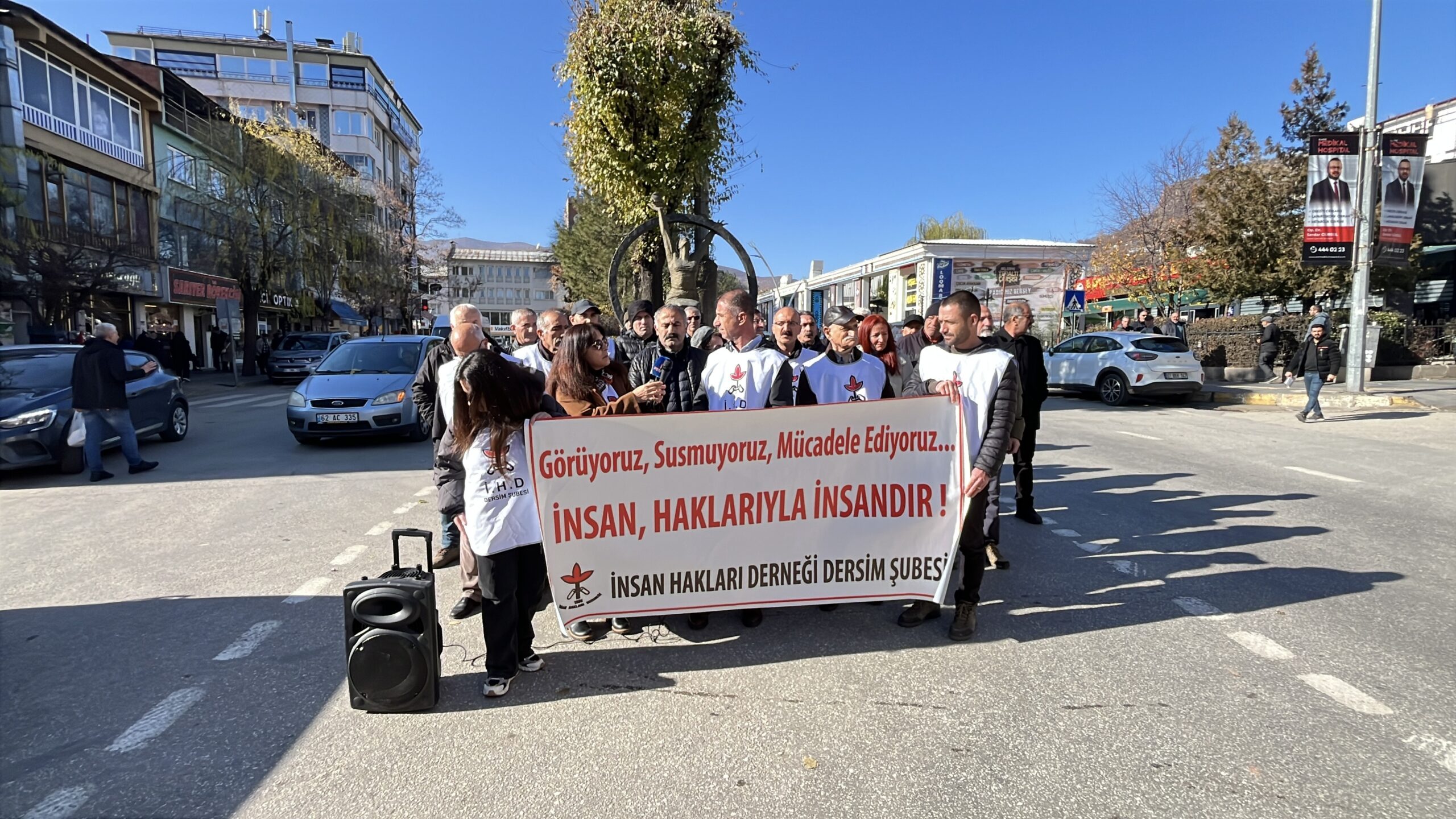 10 Aralık İnsan Hakları Haftası nedeniyle İnsan Hakları Derneği Dersim Şubesi tarafından açıklama yapıldı. Sanat Sokağında bir araya gelen kitle İnsan Hakları Anıtı’na kadar yürüyüş gerçekleştirdi. Açıklama İHD Dersim Şubesi Eş Başkanı Özgür Ateş tarafından yapıldı.