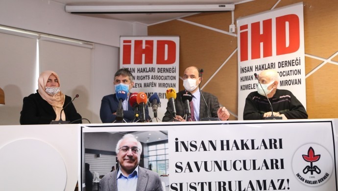 İnsan Hakları Derneği (İHD) Genel Merkezi, İHD Eş Genel Başkanı Öztürk Türkdoğan’ın gözaltına alınmasına ilişkin Genel Merkez binalarında basın toplantısı düzenledi. “İnsan hakları savunucuları susturulamaz” pankartının açıldığı toplantıya birçok demokratik kitle örgütü katıldı.
