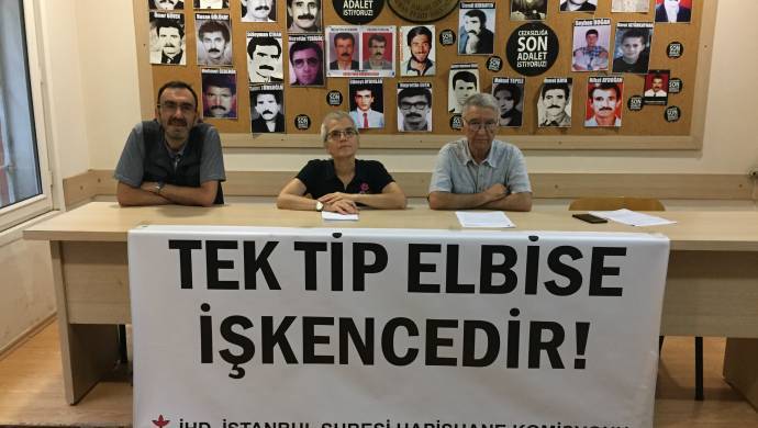 İHD İstanbul Şubesi Hapishane Komisyonu adına Mehmet Acettin’in okuduğu basın açıklasında, “TTE, mahpusu tek tipleştirmeyi, kimliksizleştirmeyi, kişiliğini ezmeyi amaçlayan bir araçtır ve kötü muamele/işkence yasağının ihlalidir.” ifadeleri kullanıldı.
