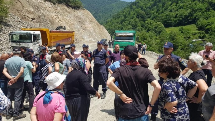 İkizdere’de taş ocağına tepki gösteren halk yolu kesti