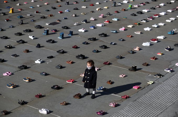 Londra’nın Trafalgar Meydanı’na 2 binden fazla çocuk ayakkabısı dizen iklim aktivisleri, hükümetin çevreyi kirleten sanayiye desteğini kesmesini istedi.