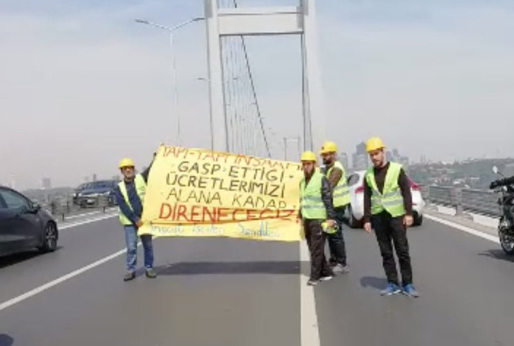 İnşaat İşçileri Sendikası’na (İnşaat-İş) üye işçiler, Yapı&Yapı İnşaat firmasının maaşlarını ödemediği gerekçesiyle Boğaziçi Köprüsü’nde eylem gerçekleştirdi.