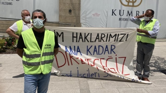İnşaat İş Sendikası Genel Sekreteri Yunus Özgür, “Başlattığımız eylemde polis oturma eylemi nöbetimizde müdahalede bulundu. Polisin bu tutumunu eleştiriyorum. Polis, Eneray Yapı Madencilik Enerji Ticaret ile Üçel Mühendisliği kastederek ‘şirketin prestijini zedeliyorsunuz’ diye bizi alandan uzaklaştırmaya çalıştı. İşçinin alacağı alın teri önemli değil de şirketin adı mı önemli! Polis kimden yana bu durum özetliyor” diye konuştu.