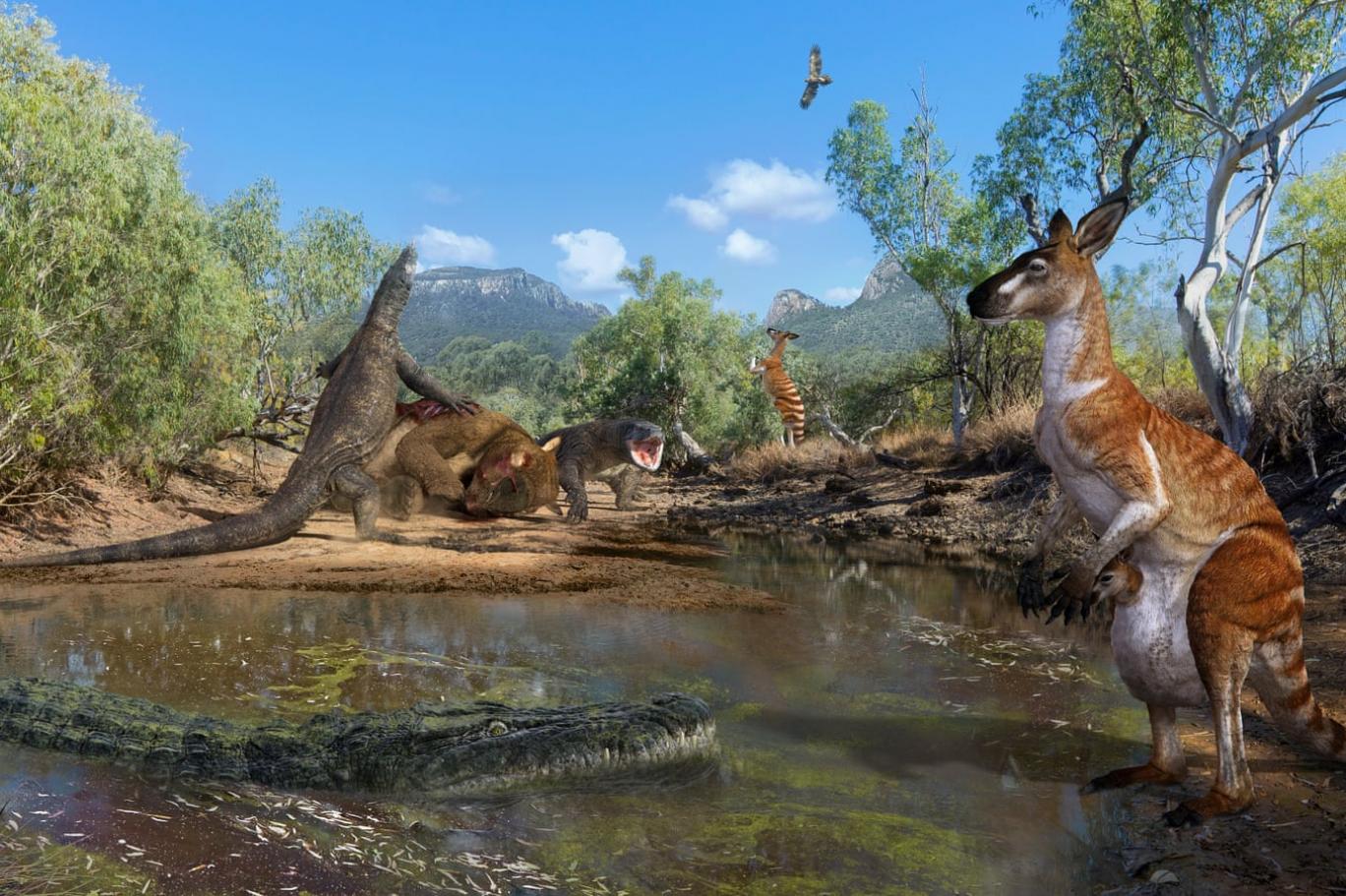 Avustralyalı bilim insanlarının son araştırması Avustralya kıtasına gelen ilk insanların, 6 metrelik dev kertelenkeleler ve insanın iki katı büyüklüğünde kangurularla birlikte binlerce yıl birlikte yaşadığını gösterdi.