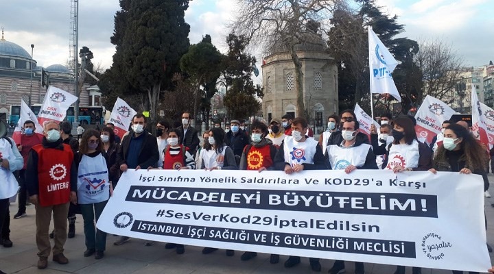 Salgın sürecinde Kod-29’la işten çıkarılanların kaçının sendika üyesi olduğu bilgisine sahip değiliz. Ancak, işçilerin “ahlak ve iyi niyet kurallarına aykırı” davrandığı gerekçesiyle işten çıkarılması, salgında ölümüne çalıştırma koşullarına karşı çıkan, önlemlerin alınmasını isteyen, sendikalaşan işçilere yönelik sistematik bir saldırı ve işçi sınıfını baskılama ve kuralsız, sendikasız çalışma rejiminin oturtulmasının aracı olarak kullanıldı.