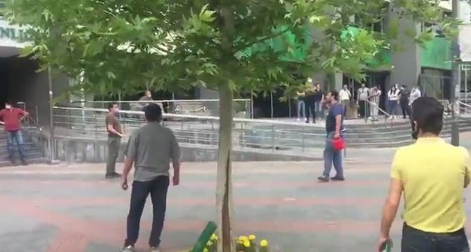 Elindeki bidonda benzin bulunan birey, kendini yakacağını dile getirdi. Bireyi çevredekiler ve güvenlik görevlileri sakinleştirmeye çalıştı. Polis tarafından ikna edilen kişi daha sonra emniyete götürüldü.