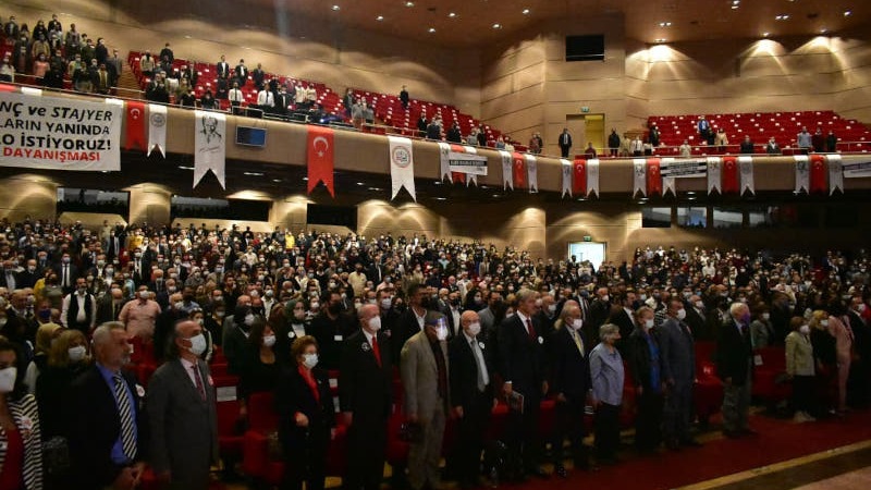Mevcut Baro Başkanı Mehmet Durakoğlu’nun, iktidarı ve TBB başkanı Metin Feyzioğlu’nu eleştirdiği genel kurulda çalışma raporunun aktarılması sırasında tartışmalar yaşanıyor.