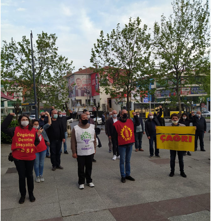 Basın açıklamasında sık sık “Yaşasın halkların kardeşliği, İbo, Deniz, Mahir sürecek sürüyor mücadelemiz , Yaşasın devrim ve sosyalizm” sloganları atıldı.