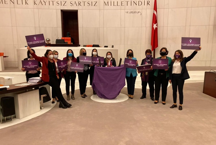 ”Meclis iradesine darbe yaparak, kadına şiddetin önlenmesi, durdurulması, kadının korunması, şiddetin cezalandırılmasını amaçlayan İstanbul Sözleşmesi’ni, gecenin karanlığında ortadan kaldırmak isteyenlerin karşısında, kürsüyü mor örtüyle kapattım.