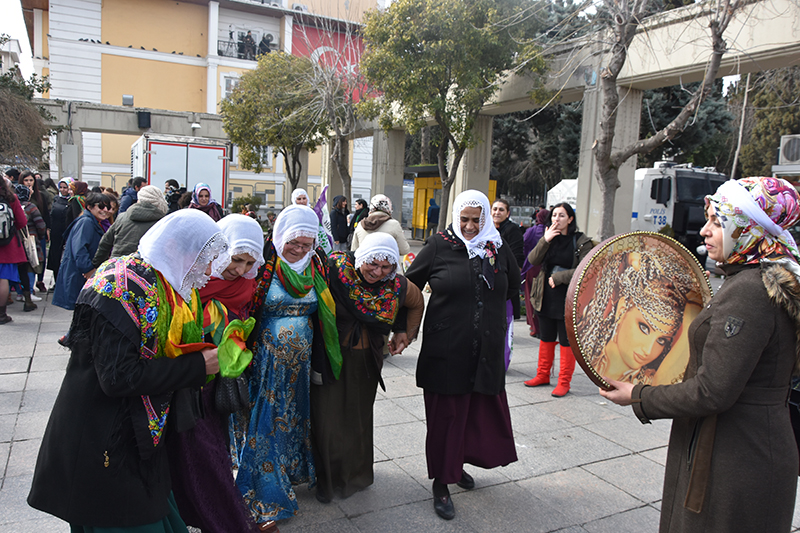 Devamında ise Tertip Komitesi adına kürtçe-türkçe basın açıklaması okundu. Basın açıklamasını okuyan Şenay Kumuz şunları ifade etti. “Eril sistemin kadın düşmanlığı dün nasılsa bugün de bütün saldırganlığı ile kadınların deneyimleri ve hayatları üzerinden devam ediyor. Bu nedenle bugün kimliğimize, kazanımlarımıza daha fazla sahip çıkma, daha gür bir sesle haykırma günüdür. Erkek egemenliğine dayanan bu sistemin her bir parçasına kimliğimize, bedenimize, emeğimize ve bizleri sömüren bu çarkın her bir parçasına karşı 161 yıldır her 8 Mart’ta olduğumuz yerde, evde, işte, okulda, sokakta direniyoruz!”