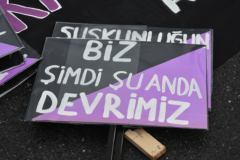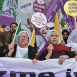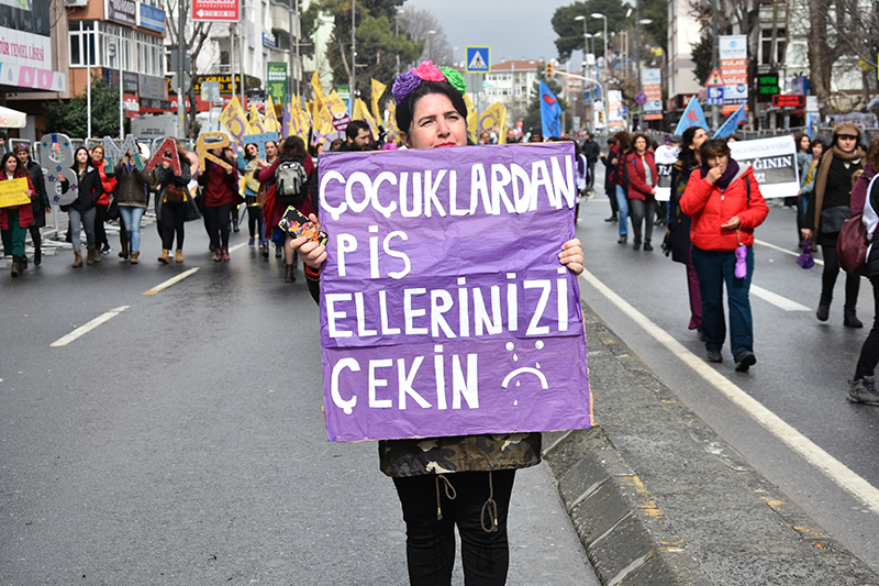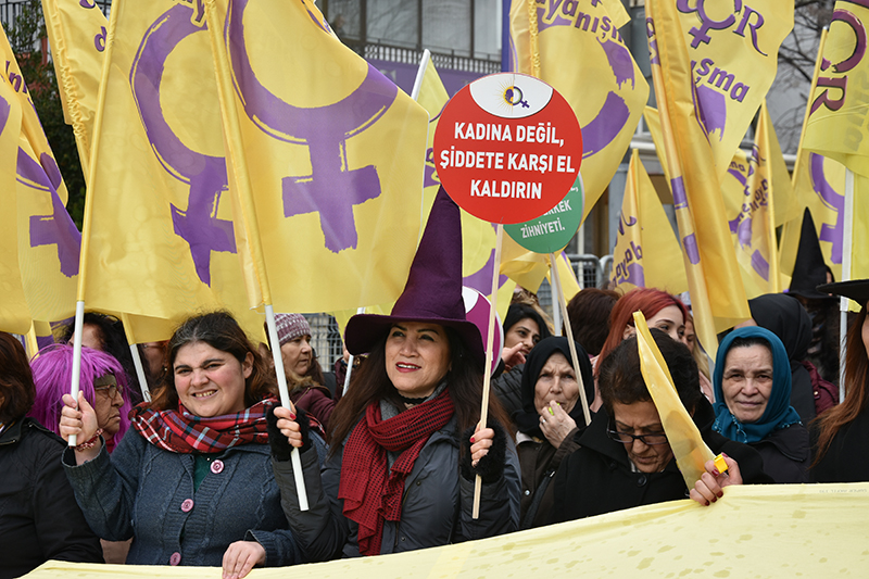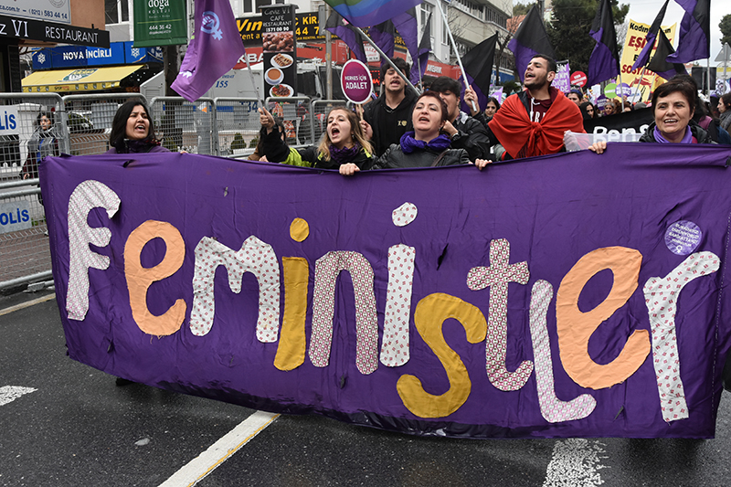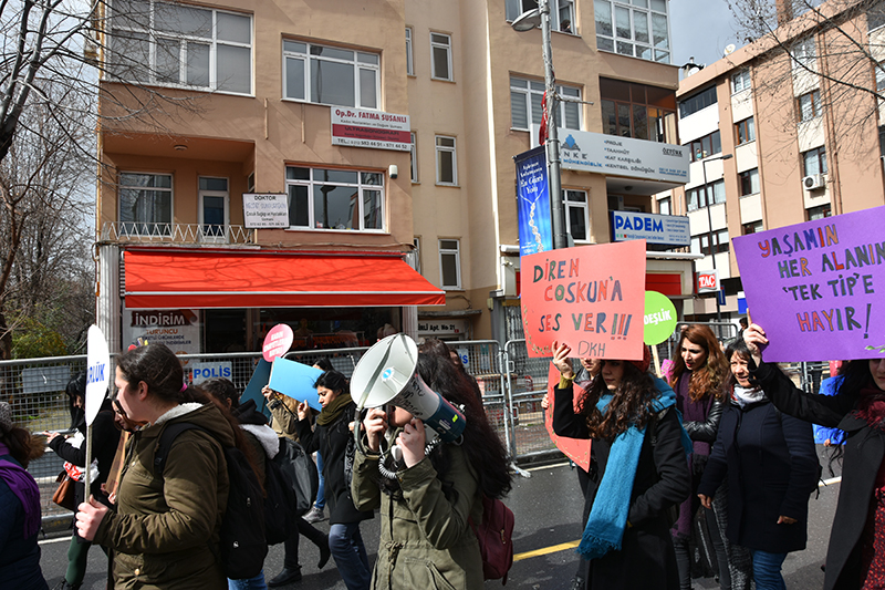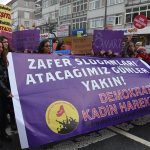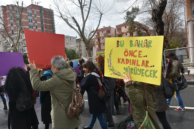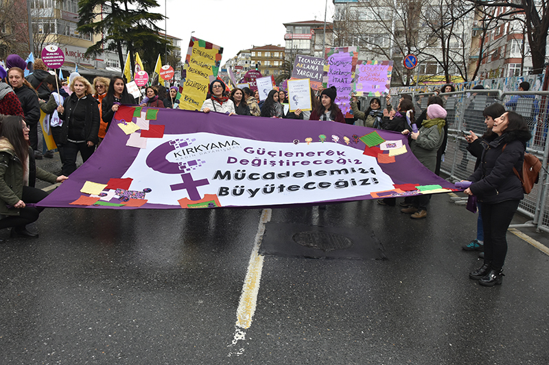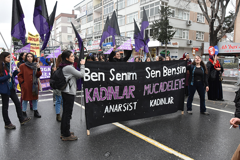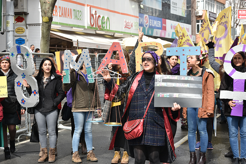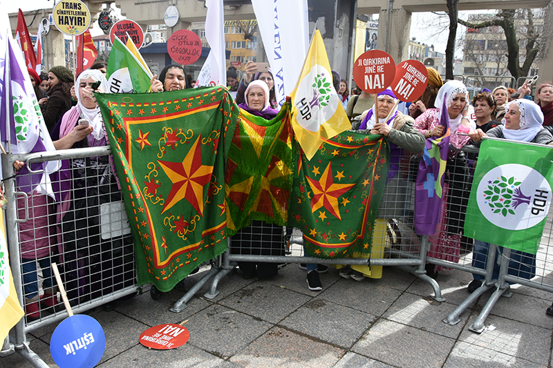 İstanbul’ da 8 Mart Kadın Platformu çağrısıyla “Savaşa, OHAL’e, cinsiyetçiliğe karşı emeğimiz, kimliğimiz ve özgürlüğümüz için direniyoruz” şiarıyla Bakırköy Özgürlük Meydanı’nda miting düzenlendi.