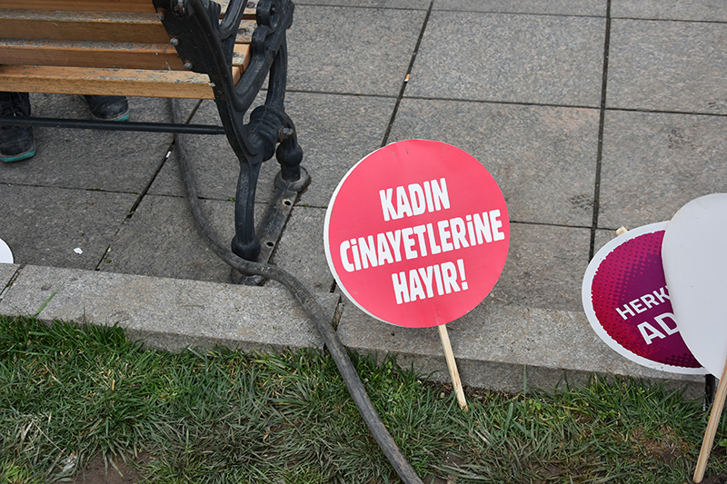 Mitinge konuşmalar ile devam edildi. İlk konuşmayı KHK’ler ile ihraç edilen KESK üyesi Sema Uçar yaptı. Uçar konuşmasında şunlara değindi. “Bir direnişi örgütlenerek kadın yoldaşlığının önemine inandık. Nerede olursak olalım; içeride, dışarıda, evde, işte özgürlük mücadelesi veren kadınlarla bir araya geldik. Mücadelemiz sürecek. Vardık varız var olacağız”.
