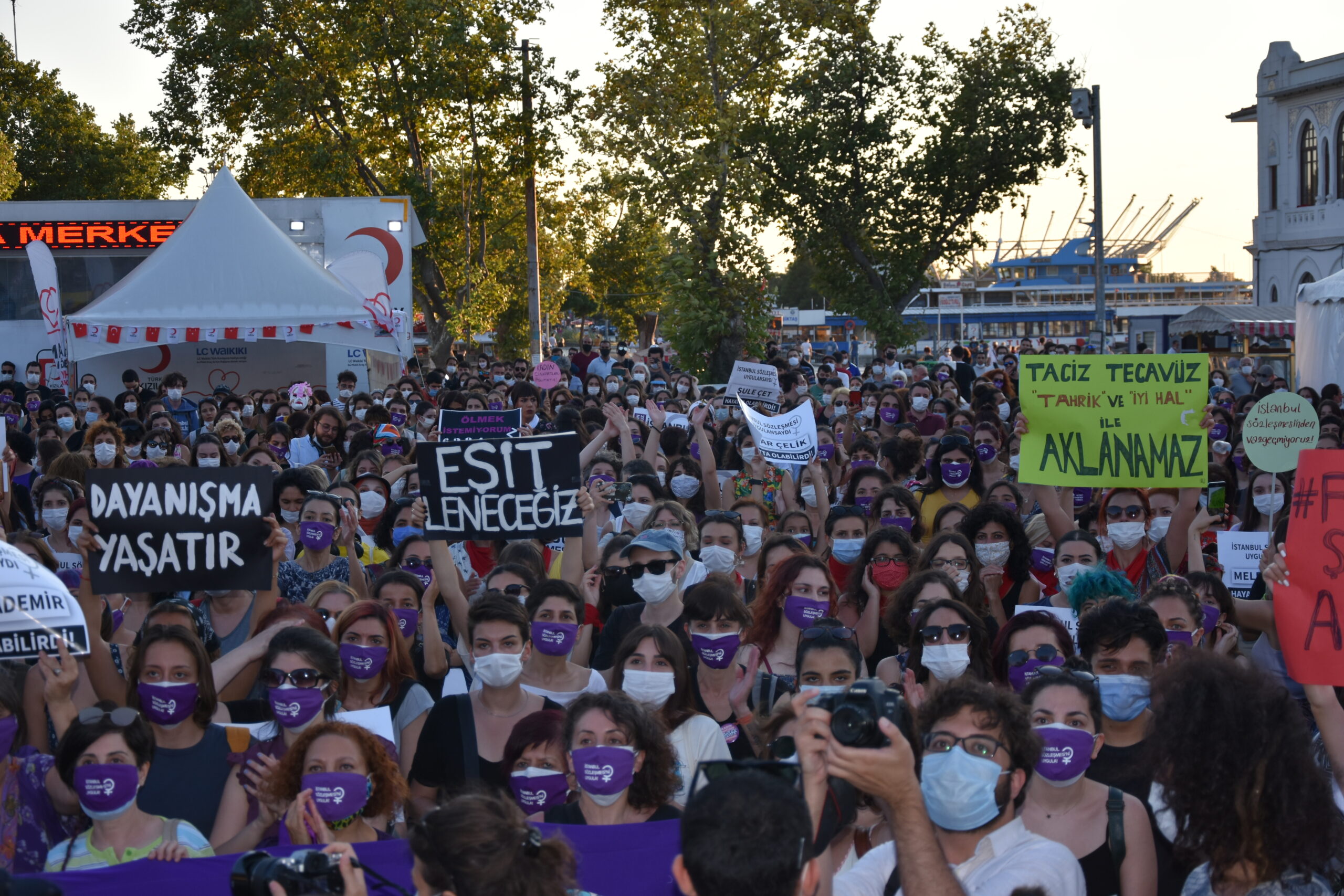 İstanbul Sözleşmesi’nden çekilmek isteyen AKP-MHP ittifakına tepki göstermek üzere Kadıköy rıhtımda yüzlerce kadın “Haklarımızdan vazgeçmiyoruz. İstanbul Sözleşmesini uygula” sloganıyla “büyük buluşma” gerçekleştirdi. “6284’ü-İstanbul Sözleşmesini uygula. Kadın cinayetlerini acil önle” pankartının açıldığı, katledilen kadınların fotoğraflarının ve İstanbul Sözleşmesinin önemine dikkat çeken dövizlerinin taşındığı eyleme çok sayıda kadın katıldı.