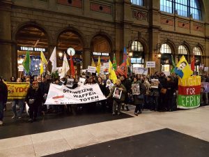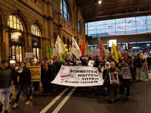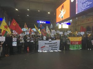 12 Mart Pazartesi günü, Winterthur şehrinin merkez istasyonunda başlayan oturma eyleminin ardından kitle yürüyüşe geçti. Şehir merkezinde yapılan eylemde sloganlarla Efrin’deki saldırıların son bulması istendi.