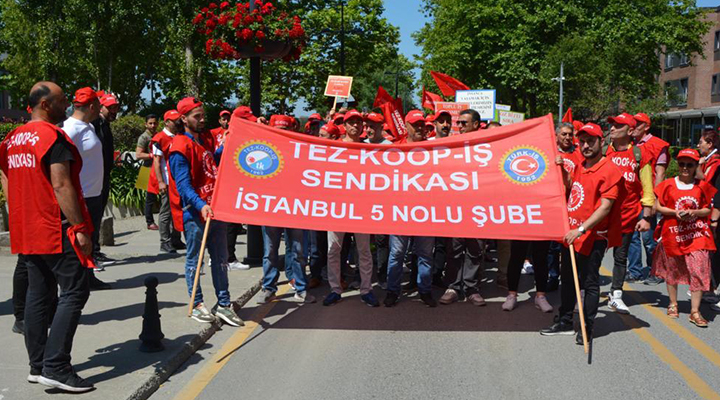 İstanbul Teknik Üniversitesi’nde (İTÜ) çalışan Tez-Koop-İş üyesi işçiler, toplu iş sözleşmesi (TİS) görüşmelerinde 3 ayı aşkın süredir anlaşma sağlanamaması üzerine üniversite kampüsünde eylem yaptı. Yemekhane önünde toplanarak rektörlüğe yürüyen işçilere çok sayıda öğrenci de destek verdi.