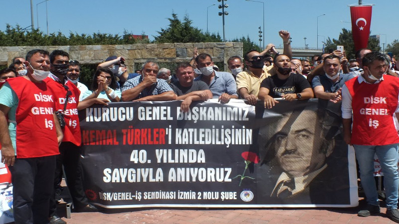 DİSK Ege Bölge Temsilcisi Memiş Sarı da “Bundan bir buçuk sene önce İzmir Büyükşehir Belediyesi önünde toplandık, gaz yedik. Demek ki her mücadelenin bir başlangıcı ve sonu vardır, bu da bunun başlangıcı ve sonudur. İlklerin kentinde yine başkanımızla bir ilke imza atıyoruz, KHK ve mağduriyeti yok ediyoruz. Toplu sözleşme bir kazanımdır ama bize de bir görev düşüyor, bu kente toz kondurmayacağız ve bunun için var gücümüzle çalışacağız. Güvenlik görevlisi arkadaşlarıma söylüyorum, biz iktidarın görevlisi değiliz. Güvenliği sağlarken bu kentin insanlarına özgür, demokrasi, barış bilinciyle hizmet vermeye devam edeceğiz” dedi. Sarı konuşmasında öldürülüşünün 40. yılında DİSK Kurucu Genel Başkanı Kemal Türkler’i de andı.