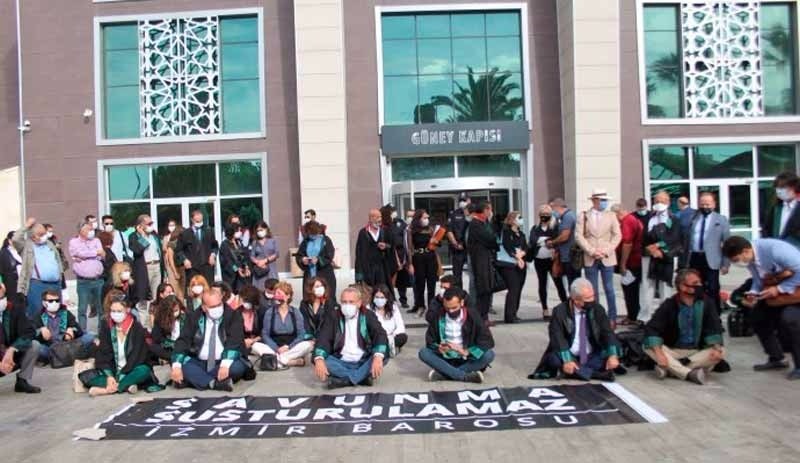 İzmir Barosu, 17-18 Ekim tarihlerinde yapmayı planladıkları genel kurullarının İçişleri Bakanlığı tarafından koronavirüs (Kovid-19) salgını gerekçe gösterilerek 1 Aralık’a ertelenmesi kararını adliye binası önünde gerçekleştirdiği oturma eylemiyle protesto etti. Baro Başkanı Özkan Yücel ve çok sayıda avukatın katıldığı eylemde “Savunma Susturulmaz” pankartı açıldı.