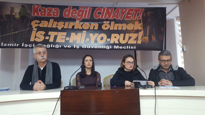 İzmir Barosu konferans salonunda yapılan basın toplantısında 2019 yılına ait raporu İSİG adına Av. Dilek Güzel okudu. Bir önceki yıla göre 300 bine yakın sigortalı işçinin işsizler ordusuna katıldığı, açlık, yoksulluk ve intiharların arttığı bir yılı geride bıraktıklarını söyleyen Güzel, “Yaşamak için değil adeta çalışmak için yaşıyoruz! Ve ölüyoruz” dedi. Güzel, 2019 yılında Türkiye’de en az 1736 işçinin İzmir’de ise en az 74 işçinin yaşamını yitirdiğini belirtti.