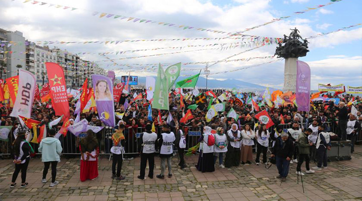 İzmir’de dün sabah saatlerinde evlere yapılan baskın sonucu gözaltına alınan 17 kişi, emniyette ifadelerinin alınmasının ardından serbest bırakıldı. 17 kişinin 19 Mart’ta Gündoğdu Meydanı’nda yapılan Newroz kutlamasına katılarak slogan attıkları ve kırmızı-sarı-yeşil flama taktıkları için gözaltına alındıkları belirtildi.