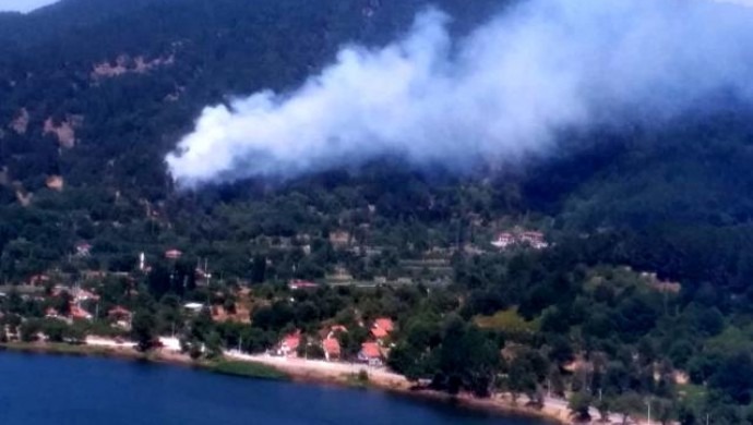 Bölgeye İzmir Orman Müdürlüğü’ne bağlı 1 helikopter ve 5 arazöz, orman işçileriyle sevk edildi. Ekiplerin yangına havadan ve karadan müdahalesi sürüyor.