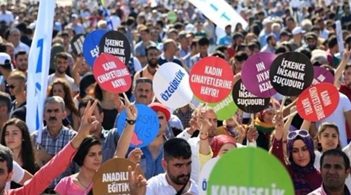 Kamu Emekçileri Sendikaları Konfederasyonu (KESK) İstanbul Şubeler Platformu Eş Sözcüsü Ertuğrul Eroğlu, çatışma ve savaşların sömürüyü derinleştirdiğini, doğayı ve yaşam alanlarını yok ettiğini belirtti. Eroğlu, “Biz, bütün dünyada ekilen nefret tohumlarına, halklar arasında yaratılan düşmanlığa karşı barış istiyoruz. Halkların eşit ve demokratik şekilde yaşamasını istiyoruz. Bölgemizde başta Filistin’de İsrail’in soykırım politikaları hız kesmeden sürmektedir. Suriye’de halklar katliam tehlikesiyle karşı karşıya kalmaktadır. Emperyalizmin bölgedeki politikaları, Ortadoğu halklarını sürekli bir katliam tehdidiyle karşılaştırmaktadır. Ülkemizde halkların bir arada ve barış içinde yaşamak için verdiği mücadelenin ilerleyebilmesi için tarihsel bir imkanın doğduğu bir andayız. Ancak siyasi iktidar, barış mücadelesinin geldiği noktaya rağmen siyasetçilerin tutuklandığı, kayyım uygulamalarının sürdüğü, yargının siyasetin sopası olarak kullanıldığı, muhalif tüm toplumsal kesimlerin özgürlüklerinin tehdit altında olduğu bir ortamı normalleştirmeye çalışmakta” diye belirtti.