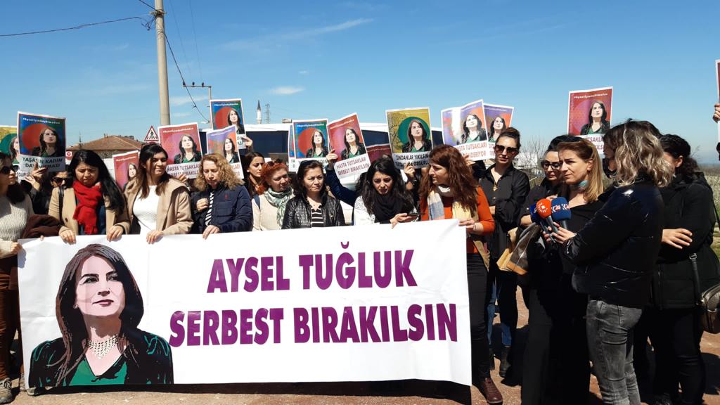 Kadın avukatlar, Kandıra Hapishanesi’nde tutulan ve demans teşhisi konulan hasta tutuklu Aysel Tuğluk’u ziyaret etti. Avukatlar ziyaret sonrası hapishane önünde açıklama yaptı. “Aysel Tuğluk serbest bırakılsın” pankartının açıldığı açıklamada Aysel Tuğluk’un hastalığının ilerlediğine dikkat çeken avukatlar, Tuğluk’un bir an önce serbest bırakılması çağrısı yaptı.