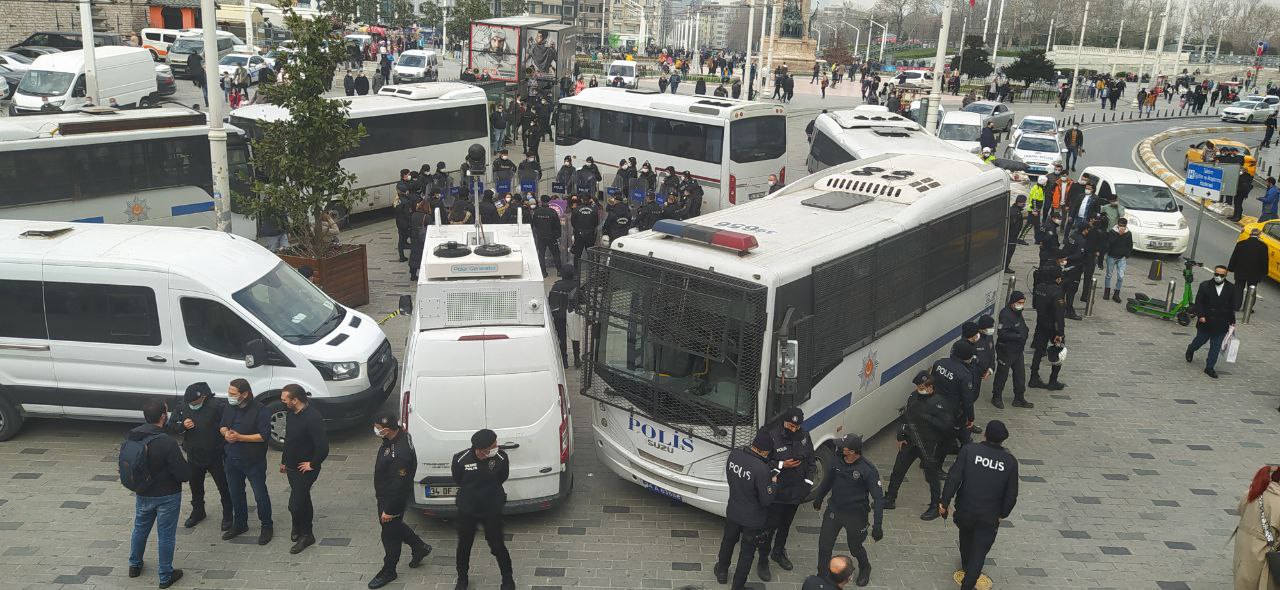 AKP’li Cumhurbaşkanı Recep Tayyip Erdoğan’ın imzasıyla İstanbul Sözleşmesi’nin feshedilmesini protesto kadınlar Taksim Meydanı’nda oturma eylemine başladı.