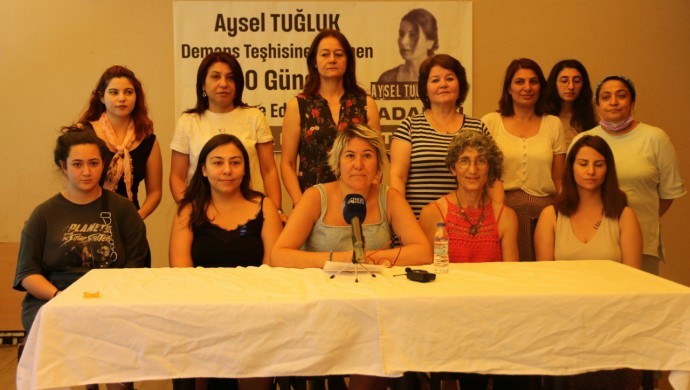 Açıklamada konuşan akademisyen Yasemin Özgün, Aysel Tuğluk’a 2021 yılı Şubat ayında Seka Devlet Hastanesi’nde demans teşhisi konulduğunu hatırlattı. Tuğluk’un her geçen gün hastalığının ilerlediğini ancak Adli Tıp Kurumu (ATK) 3’üncü İhtisas Kurulu tarafından “cezaevinde tek başına hayatını idame ettirebilir” raporu verildiğini aktaran Özgün, Tuğluk hakkında 22 Haziran’da hazırlanan son raporun da objektiflikten, bilimsellikten uzak olduğunun altını çizdi.