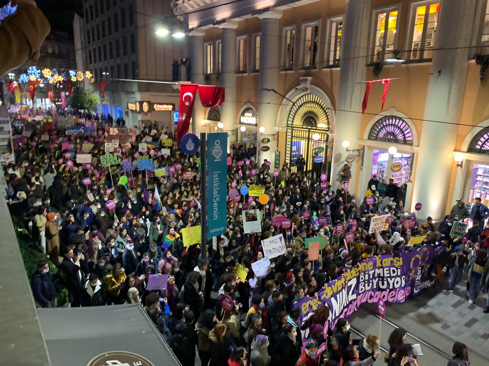 Kadınların buluşması öncesi, Beyoğlu’nun Taksim Meydanı ve İstiklal Caddesi başta olmak üzere birçok cadde ve sokak bariyerlerin yanı sıra zırhlı araç ve çevik kuvvet araçları ile ablukaya alındı. Polis ablukasına aldırış etmeyen kadınlar, Tünel Meydanı’nda pankartları ile toplanıyor.