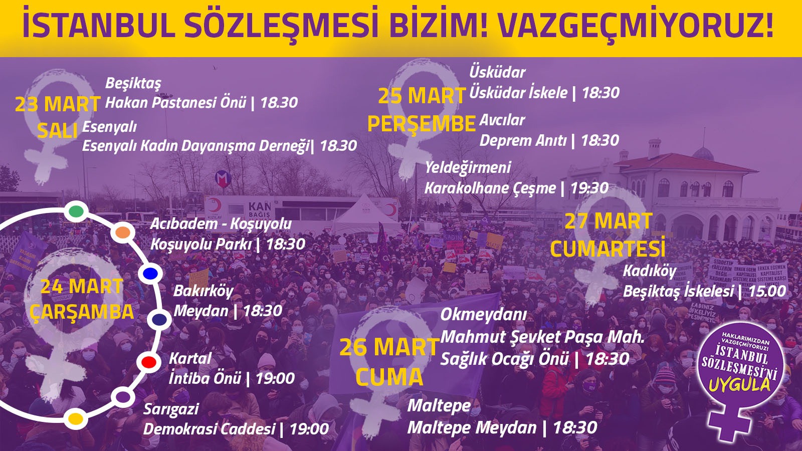 Kadınlar protsto eylemlerine devam ederken İstanbul’da eylem programı şöyle;