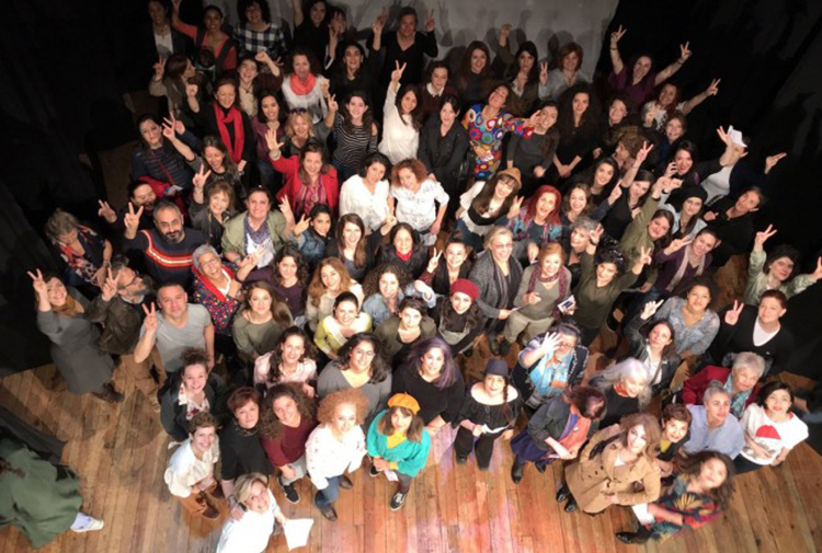 Kenter Tiyatrosu’nda “Kadınlar Sahneye” çağrısıyla bir araya gelen kadınlara erkek oyuncular da destek verdi.
