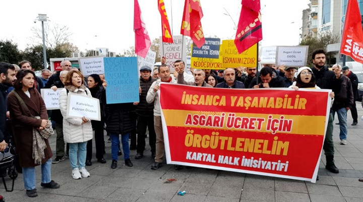 İstanbul’da Kartal Halk İnisiyatifi’nin gerçekleştirdiği eylemde asgari ücret, sömürü ve yoksulluk karşısında örgütlü mücadele çağrısı yapıldı. Kartal Halk İnisiyatifi, 12 Aralık’ta başlayacak asgari ücret görüşmeleri öncesi Neyzen Tevfik Meydanı’nda asgari ücrete dair taleplerini açıkladı. “İnsanca yaşanabilir asgari ücret için örgütlenelim” pankartı açılan eylemde, “Sermayeye değil emekçiye bütçe”, “Kurtuluş yok tek başına, ya hep beraber ya hiçbirimiz” sloganları atıldı.