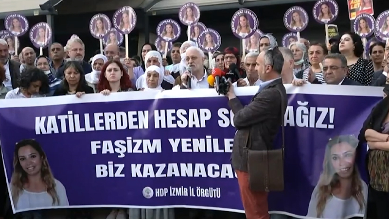 Halkların Demokratik Partisi (HDP) İzmir il binasına silahlı saldırı düzenleyen ve Deniz Poyraz’ı katleden Onur Gencer’in yargılandığı davanın 3’üncü duruşması Bayraklı’da bulunan İzmir 6’ncı Ağır Ceza Mahkemesi’nde görülüyor. Duruşma öncesi İzmir Bayraklı Adliyesi önünde basın açıklaması gerçekleştirdi.