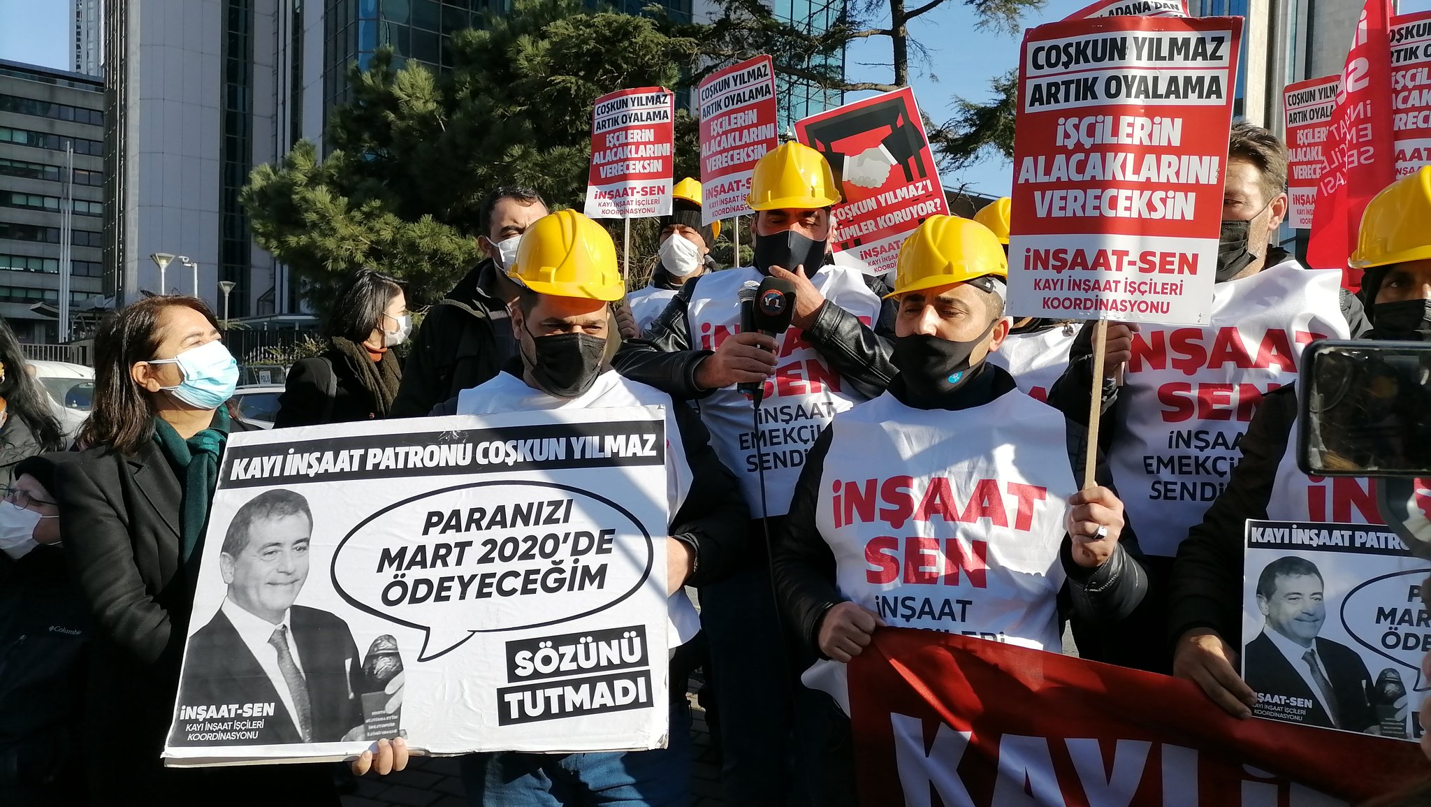 İnşaat Emekçileri Sendikası’na (İnşaat Sen) bağlı Kayı İnşaat İşçileri Koordinasyonu, ödenmeyen ücretlerini alabilmek için işveren Coşkun Yılmaz’ın ofisinin bulunduğu Levent’teki Kayı İnşaat Genel Merkezi önünde başlattıkları eylem 9’uncu gününde. Eyleme, Halkların Demokratik Partisi (HDP) milletvekilleri Züleyha Gülüm, Musa Piroğlu ve Serpil Kemalbay, Birleşik Gençlik Meclisi üyeleri, Halkevleri, Devrimci İşçi Sendikaları Konfederasyonu (DİSK) Genel İş Örgütlenme Dairesi, DİSK’e bağlı Birleşik Metal İşçileri Sendikası (Birleşik Metal-İş), Kaldıraç, Genç İşçi Derneği, Devrimci Parti, Dördüncü Vardiya Dayanışması, temsilci ve yöneticileri de destek verdi.