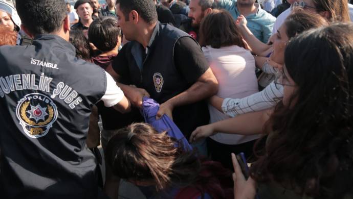 Abluka alınmalarına tepki gösteren kadınlara saldıran polis, aralarında Özgür Gelecek muhabiri Taylan Öztaş’ında bulunduğu 23 kişiyi darp ederek gözaltına aldı.